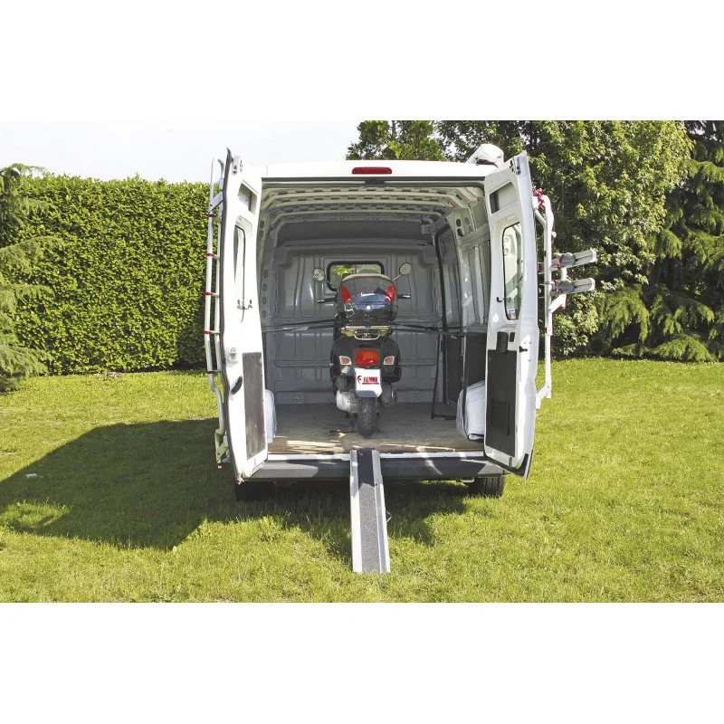 Ce système est aussi bien pensé pour une seule moto que pour un scooter électrique compact. Pour les situations plus spécifiques (fauteuil roulant, matériel encombrant), deux rampe Carry-Ramp peuvent être jumelées pour élargir l’accès.