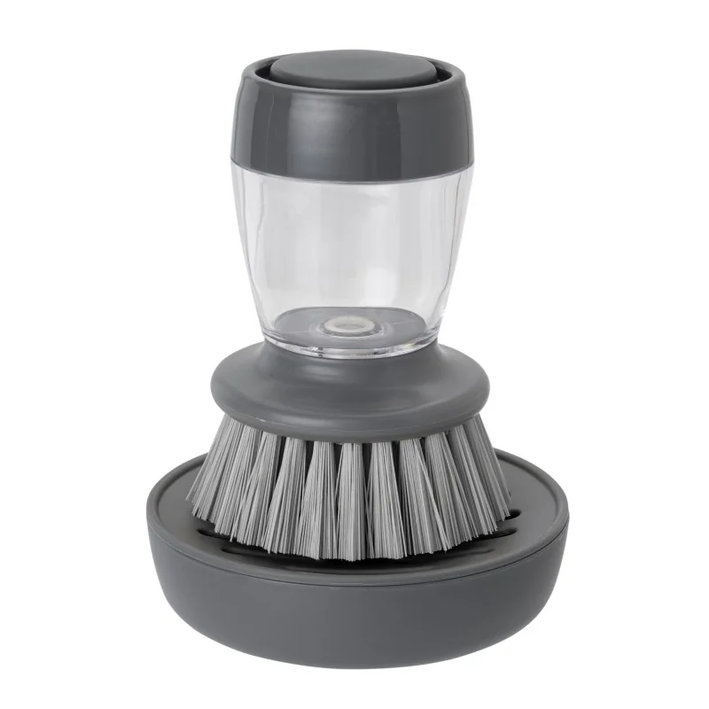 BROSSE VAISSELLE AVEC RESERVOIR ET SUPPORT PURA BRUNNER : nettoyez 2x plus vite grâce au réservoir et 1 pression, zéro gaspillage. Gardez l’évier propre, installez‑la en 5 sec, sans perçage.