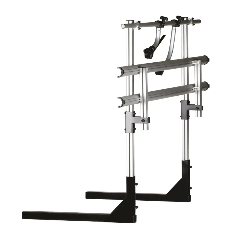 Pour démonter : retirer les vélos, libérer les attaches et plier l’ensemble vers l’intérieur (sans outil).
