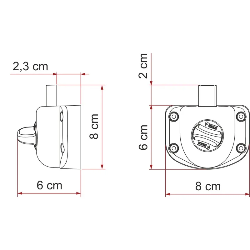 Son design compact (env. 8 x 6 cm) passe partout, y compris dans les angles restreints. Le bouton rotatif central est large et offre une excellente prise en main, même avec des gants. Résultat : verrouillage rapide le soir en bivouac, sans sortir du véhicule.
