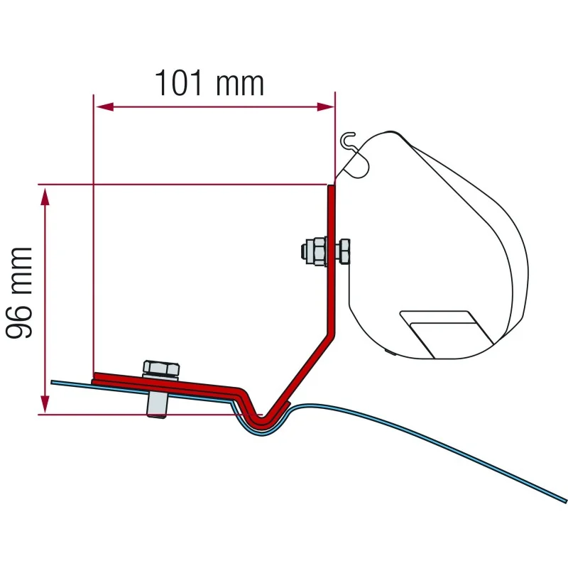 Deux supports prêts à poser pour une installation propre et solide de votre store F35 sur un VW Caddy Maxi sans toit relevable, modèle après 2016.