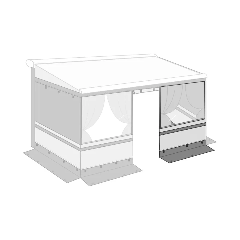 Un panneau frontal vinyle léger et robuste pour protéger efficacement l’espace sous auvent des UV, de la pluie ou du vent.