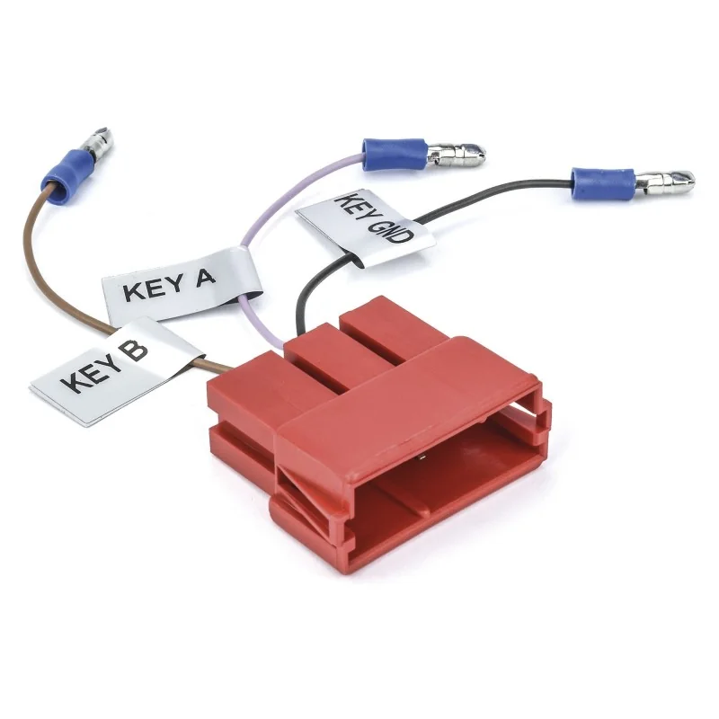 Le câblage est robuste, isolé et clairement étiqueté (KEY A, KEY B, KEY GND), ce qui sécurise l’installation tout en facilitant son repérage. La longueur du câble est optimisée pour limiter les vrilles sous le tableau de bord.